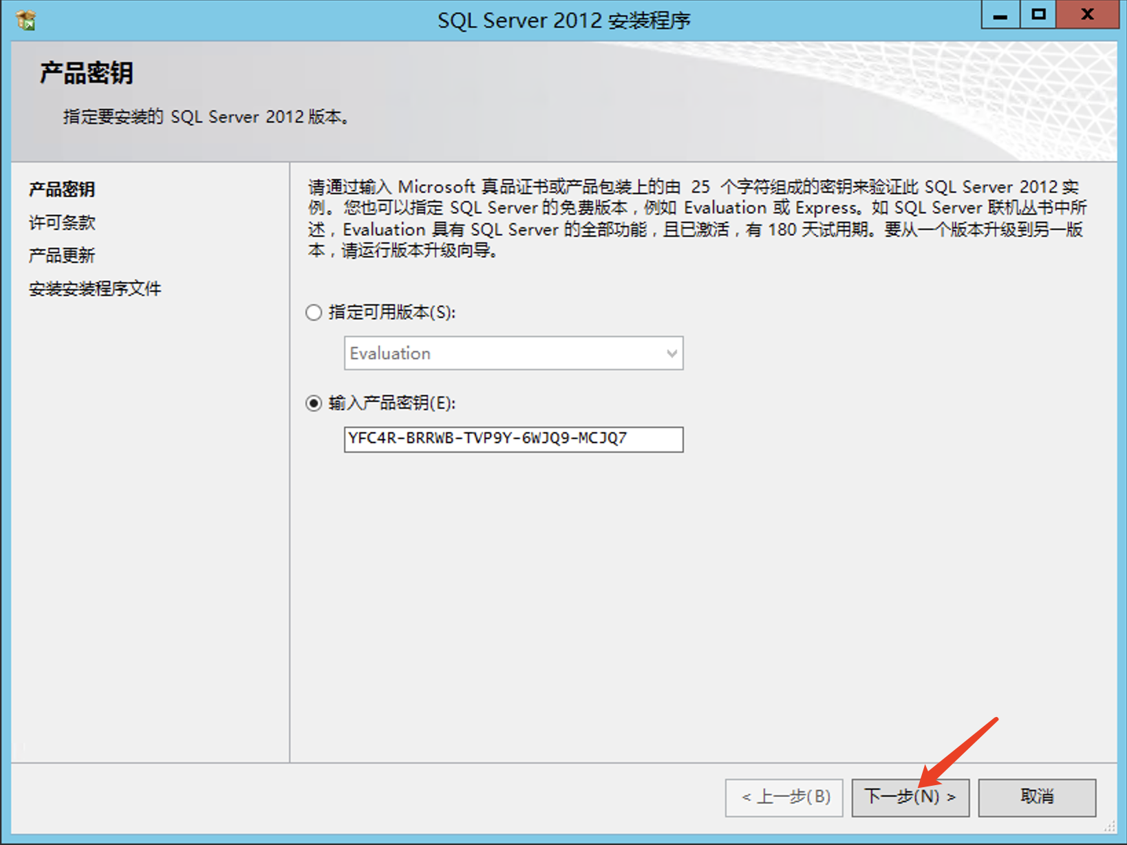 - 选择安装版本,输入产品密钥,密钥这里是自动带出的,单击“