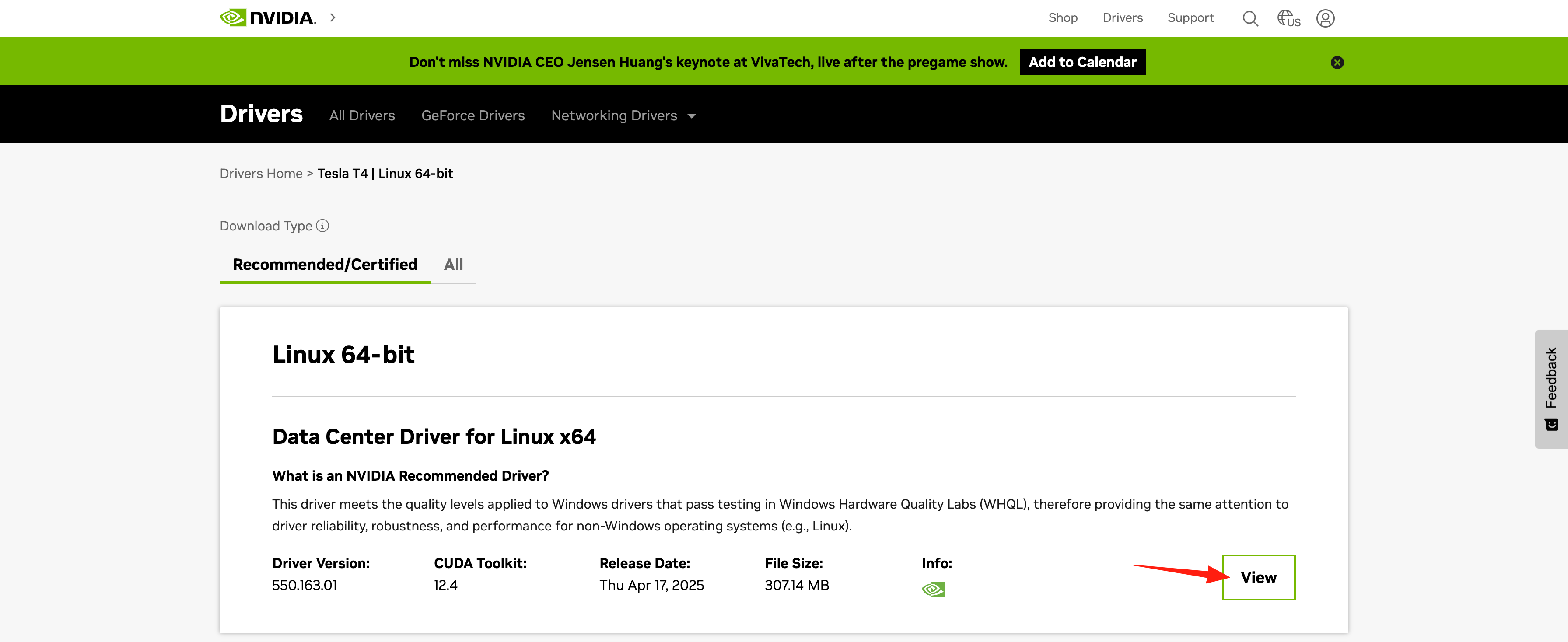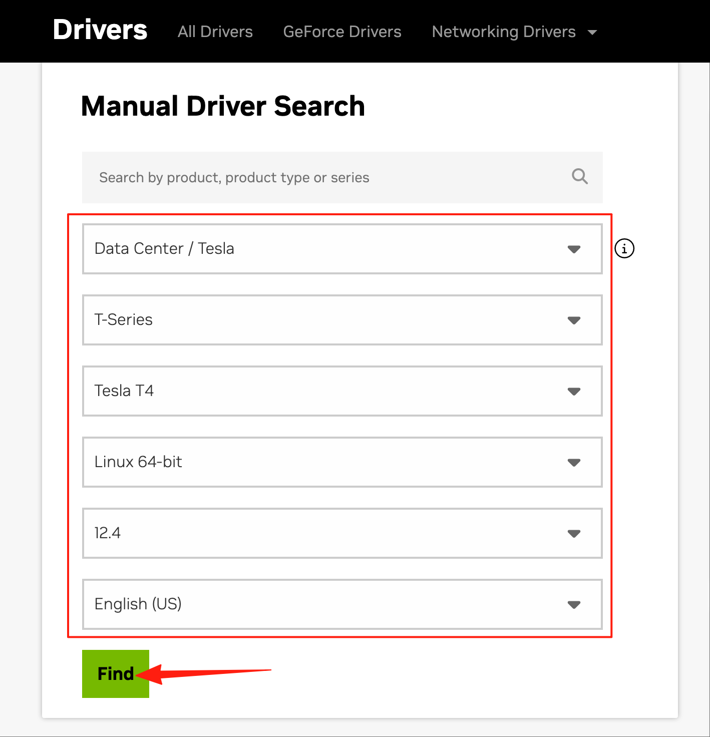 访问Download The Official NVIDIA Drivers | NVIDIA,根据实际情况选择对应的显卡型号、平台类型和CUDA版本,点击“Find”