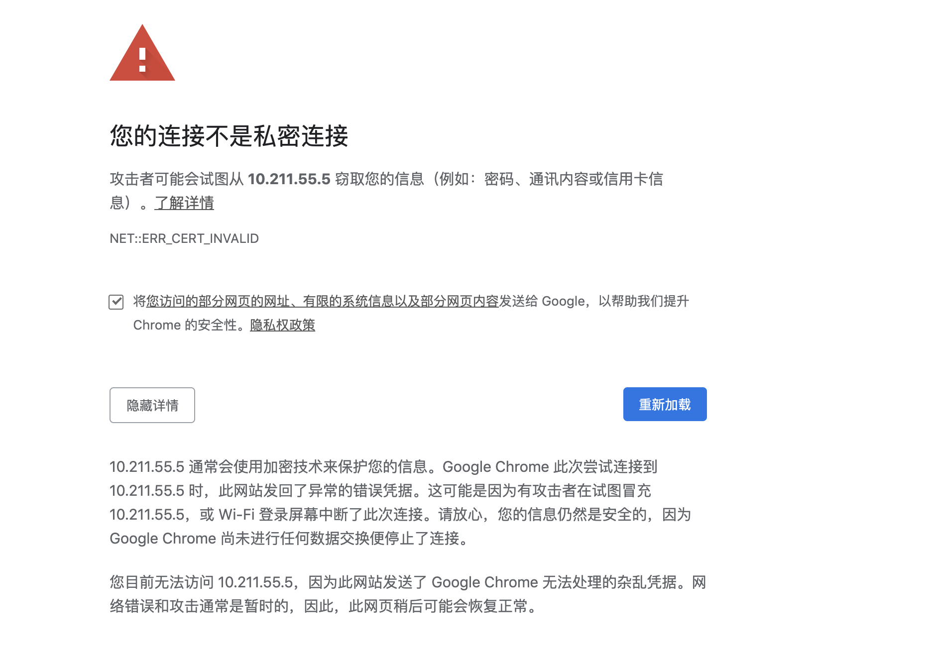 说明 如果在Chrome浏览器中访问Kubernetes Dashboard没有”继续前往x.x.x.x(不安全)”的选项,可参考下面的步骤进行处理 1.在刚执行命令部署Kubernetes Dashboard的master节点上执行以下命令删除默认的secret,并用自签证书创建新的secret(注意修改自签证书的路径是否与实际环境一致)
