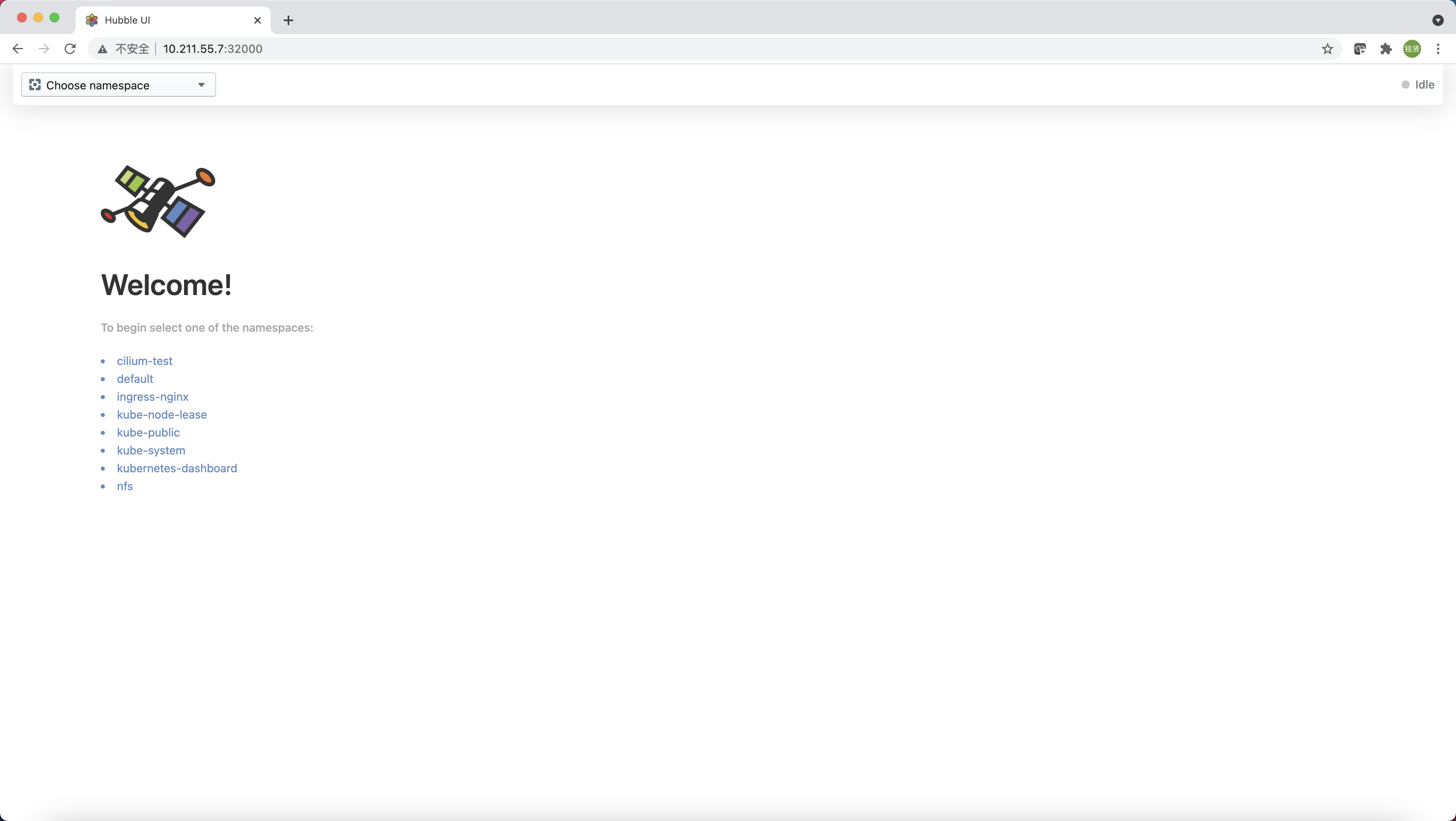 浏览器访问http://<NodeIP>:<nodeport>即可打开Hubble UI。