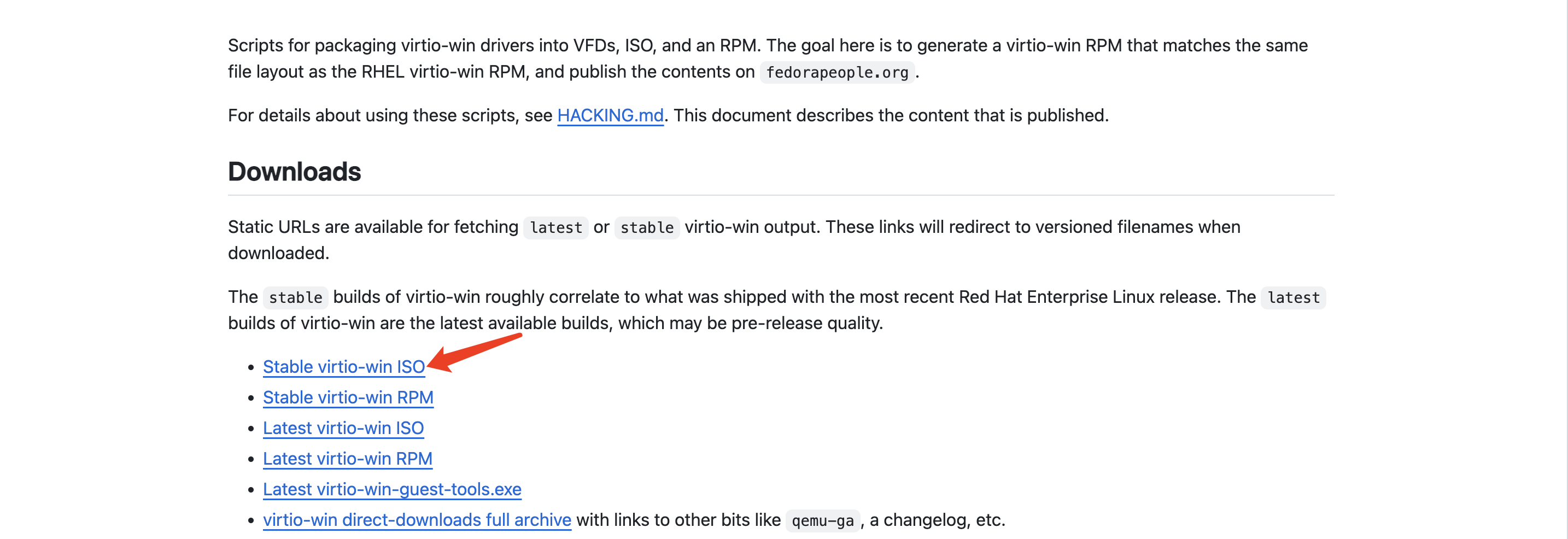 访问virtio官方下载地址,下载稳定版virtio驱动并上传到/tvm下。