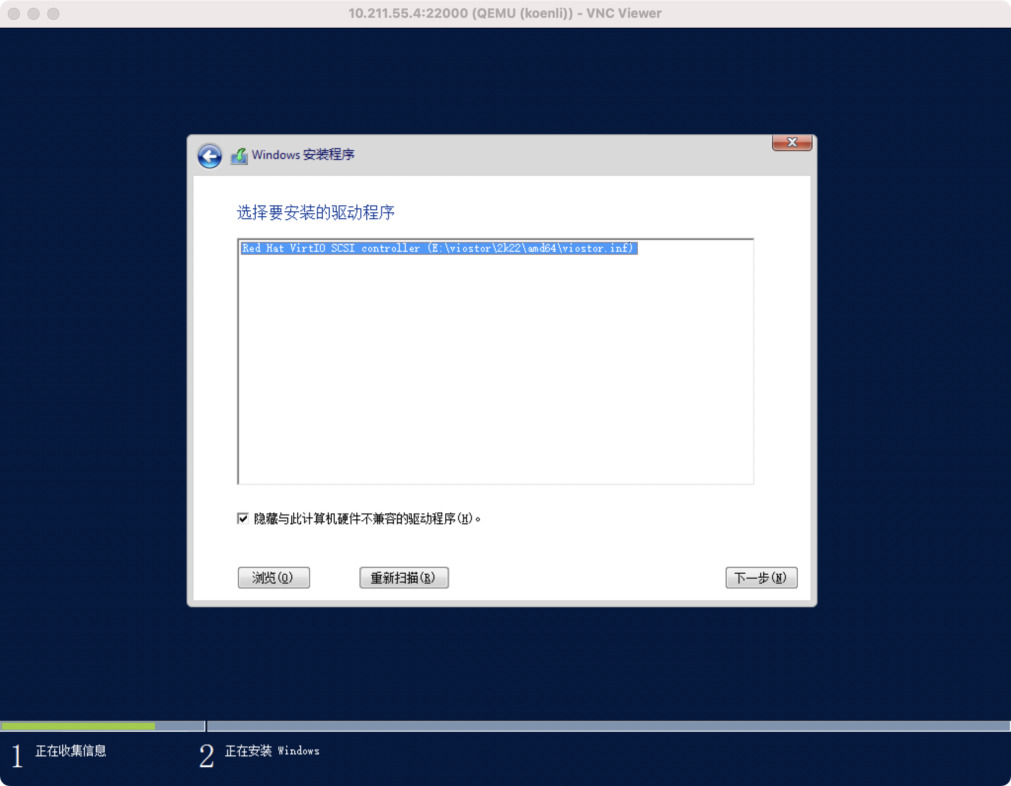 扫描出来可用的SCSI驱动后,单击“下一步”