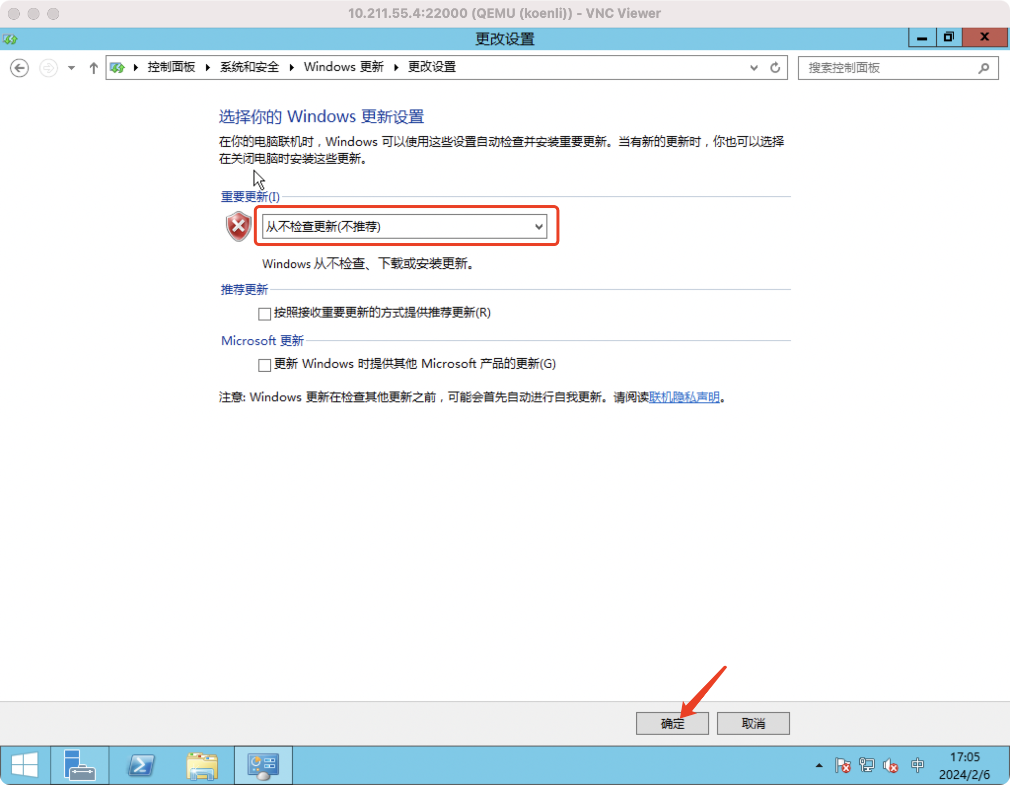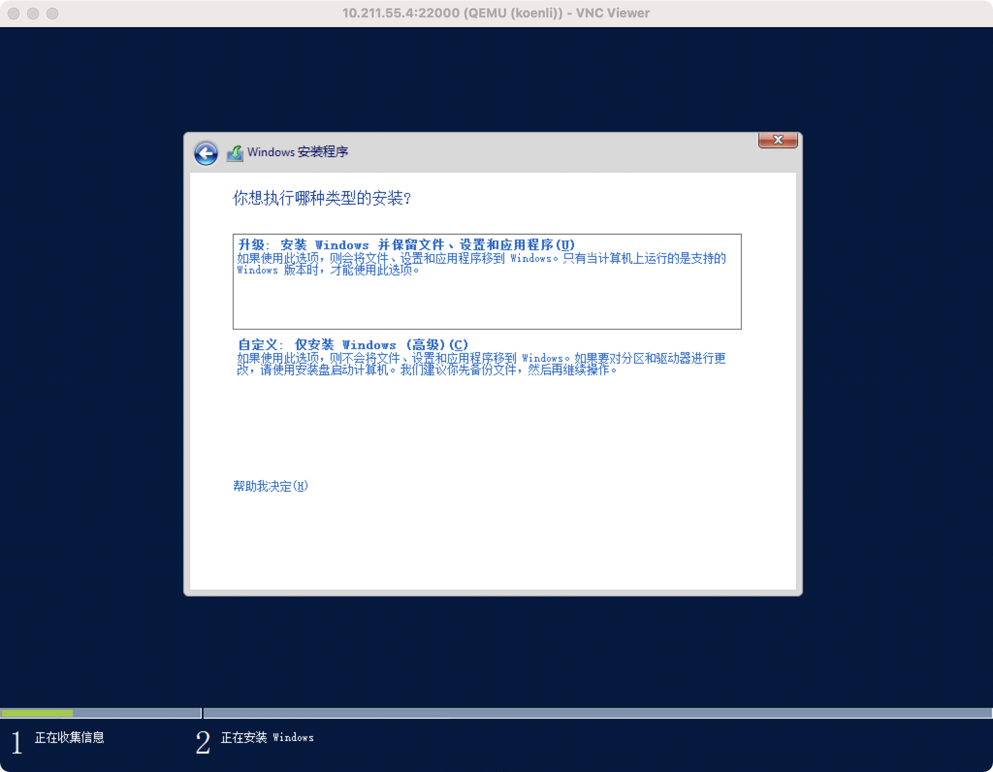 启动完成后,使用vnc client连接到虚拟机控制台。