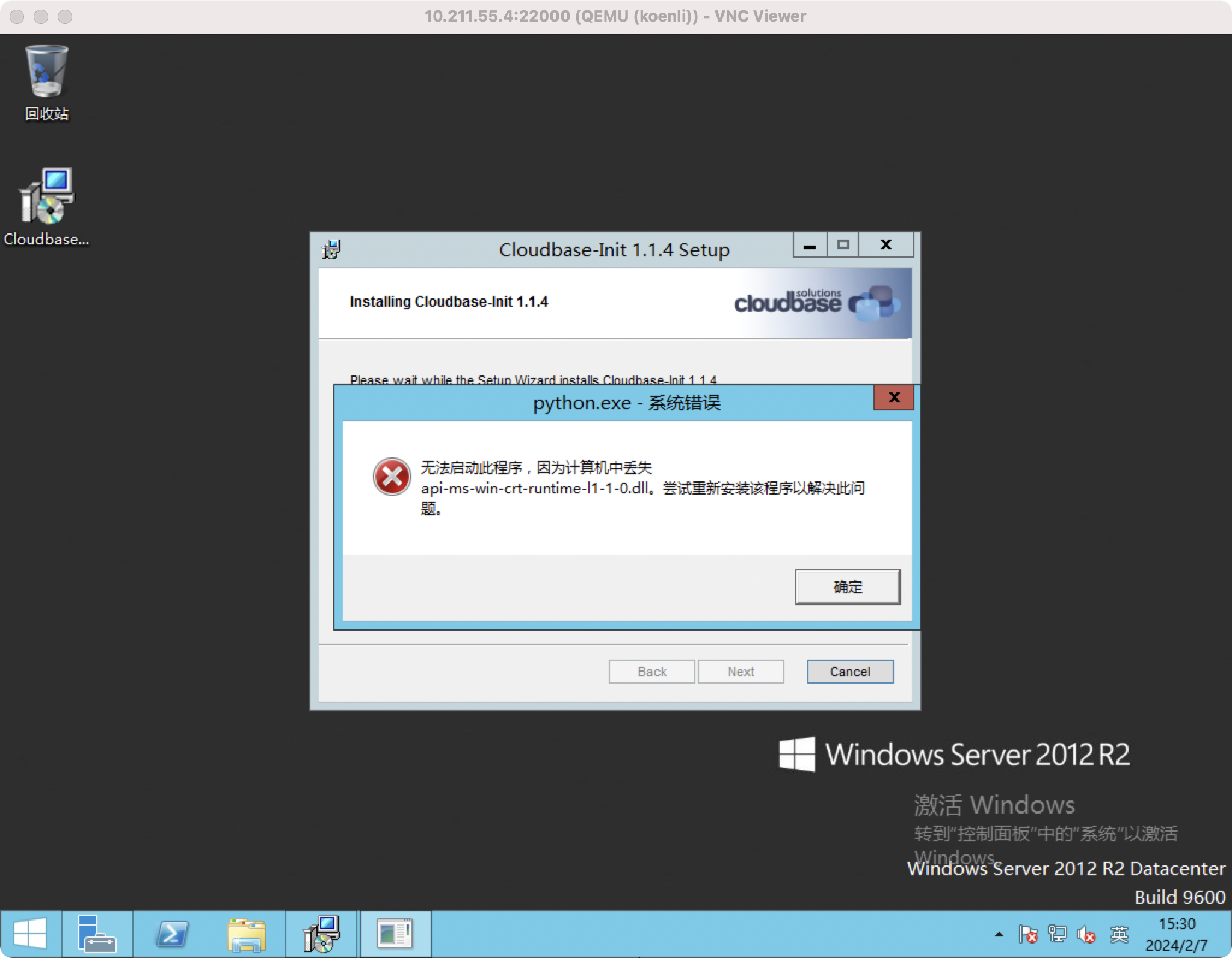关闭Cloudbase-Init安装界面时,请勿勾选任何复选框,不要运行Sysprep