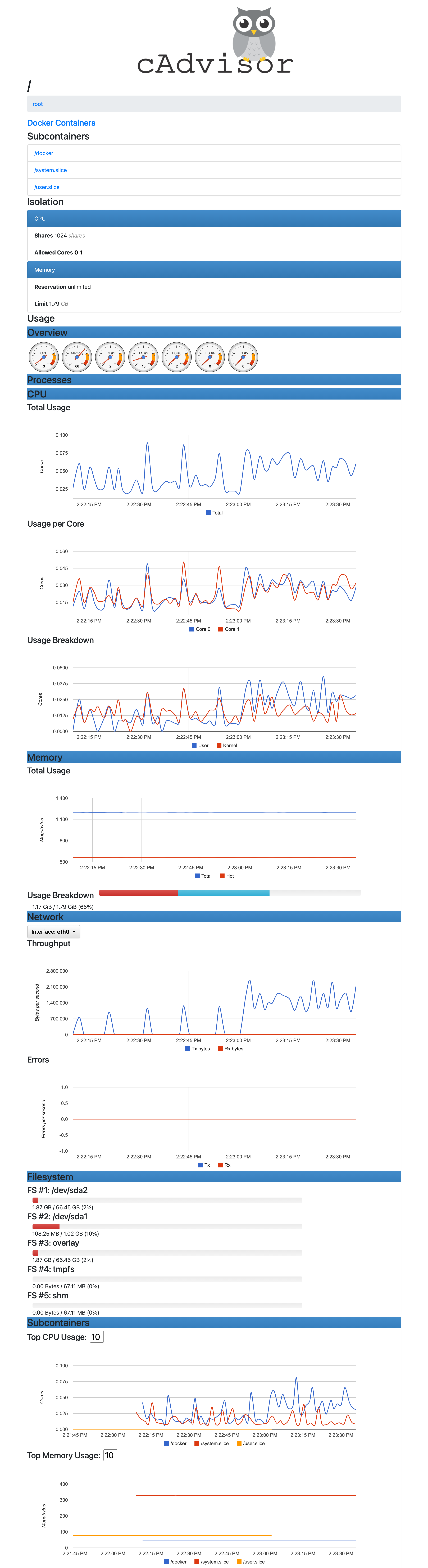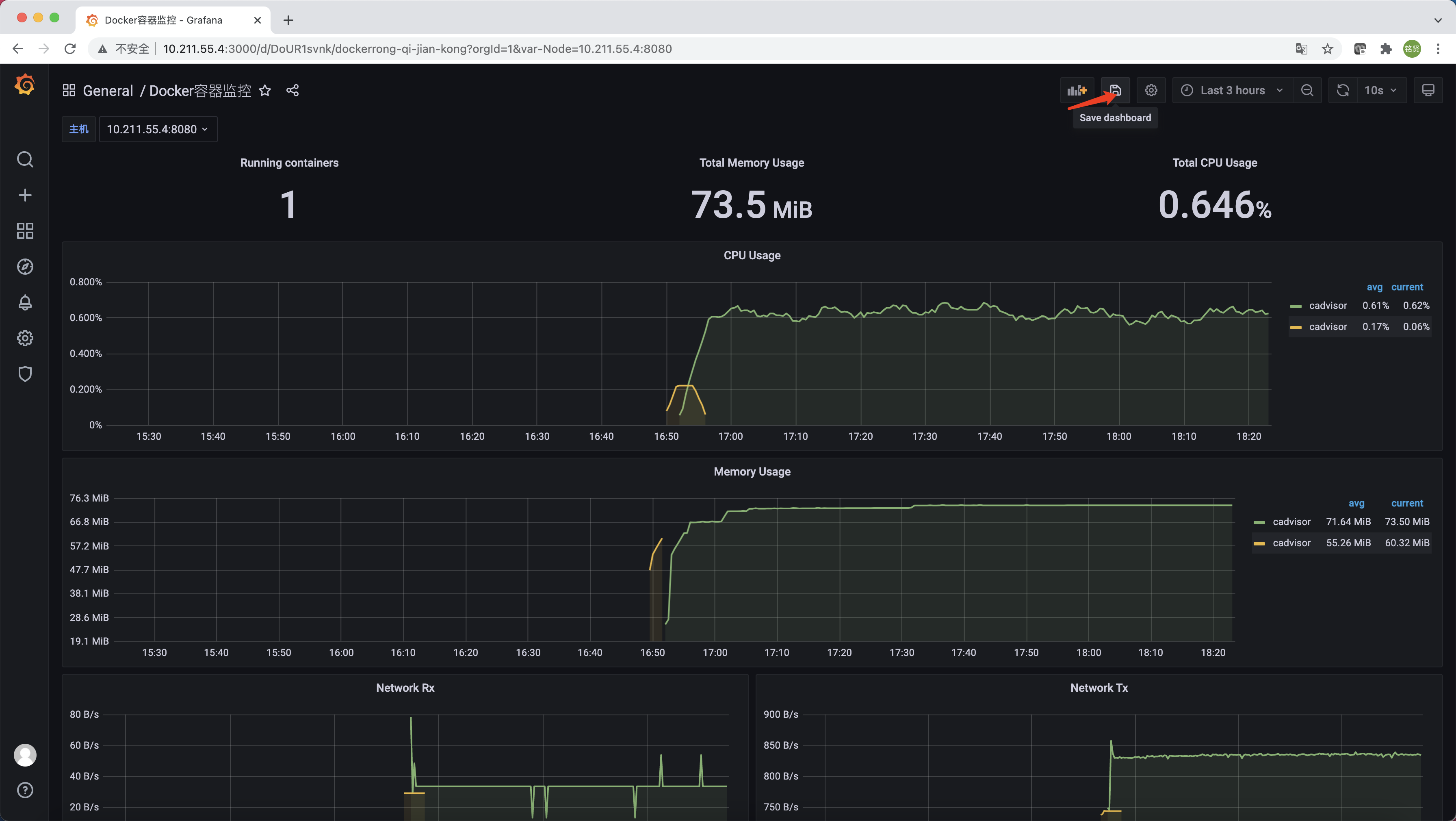 cAdvisor是一个简单易用的工具,相比于使用Docker命令行工具,用户不用再登录到服务器中即可以可视化图标的形式查看主机上所有容器的运行状态。