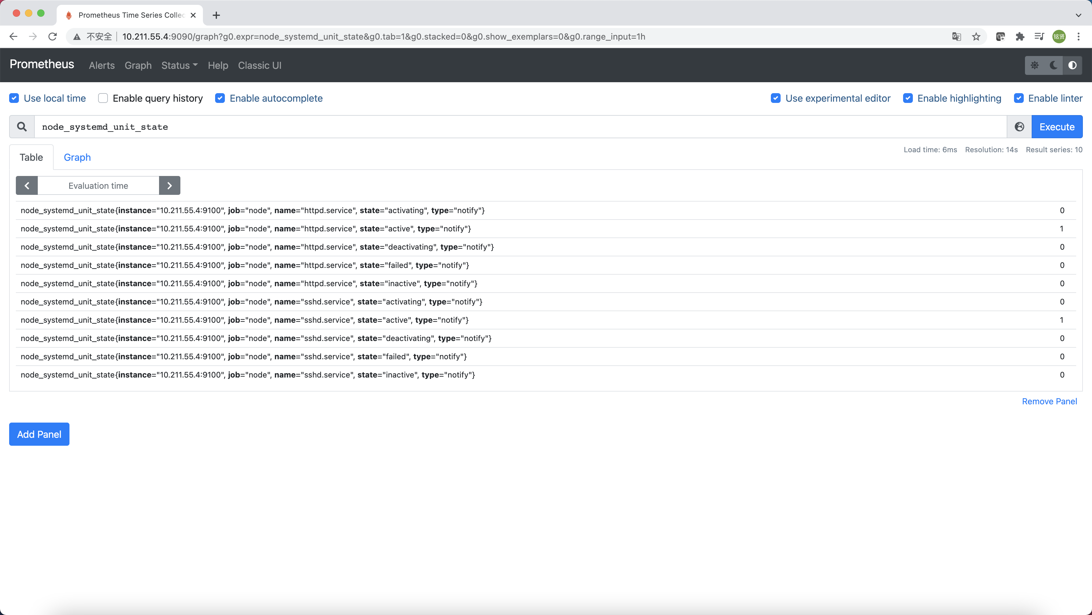 通过PromQL可以看到已经拉取到node_systemd_unit_state指标的监控数据