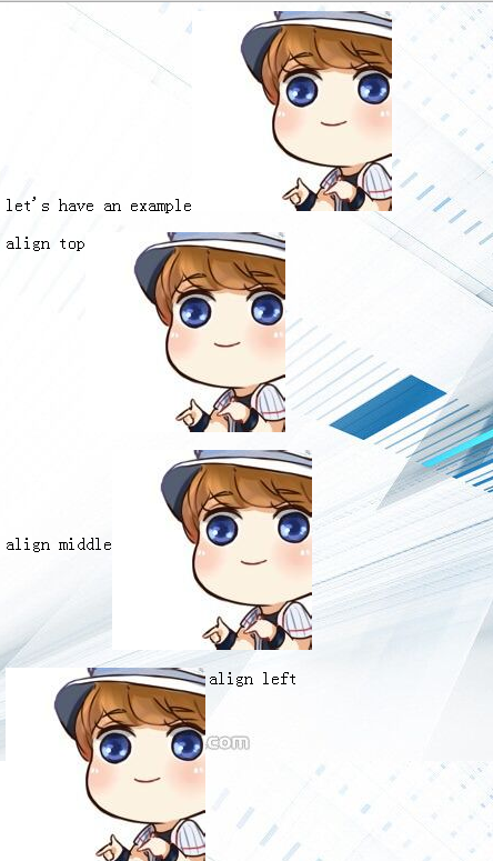 <body> <p> let's have an example </p> <p> <ahref="http://www.baidu.com"target="_blank"title="this word will link to the web of baidu"><imgsrc="happy.png" /></a> </p> </body> </html>