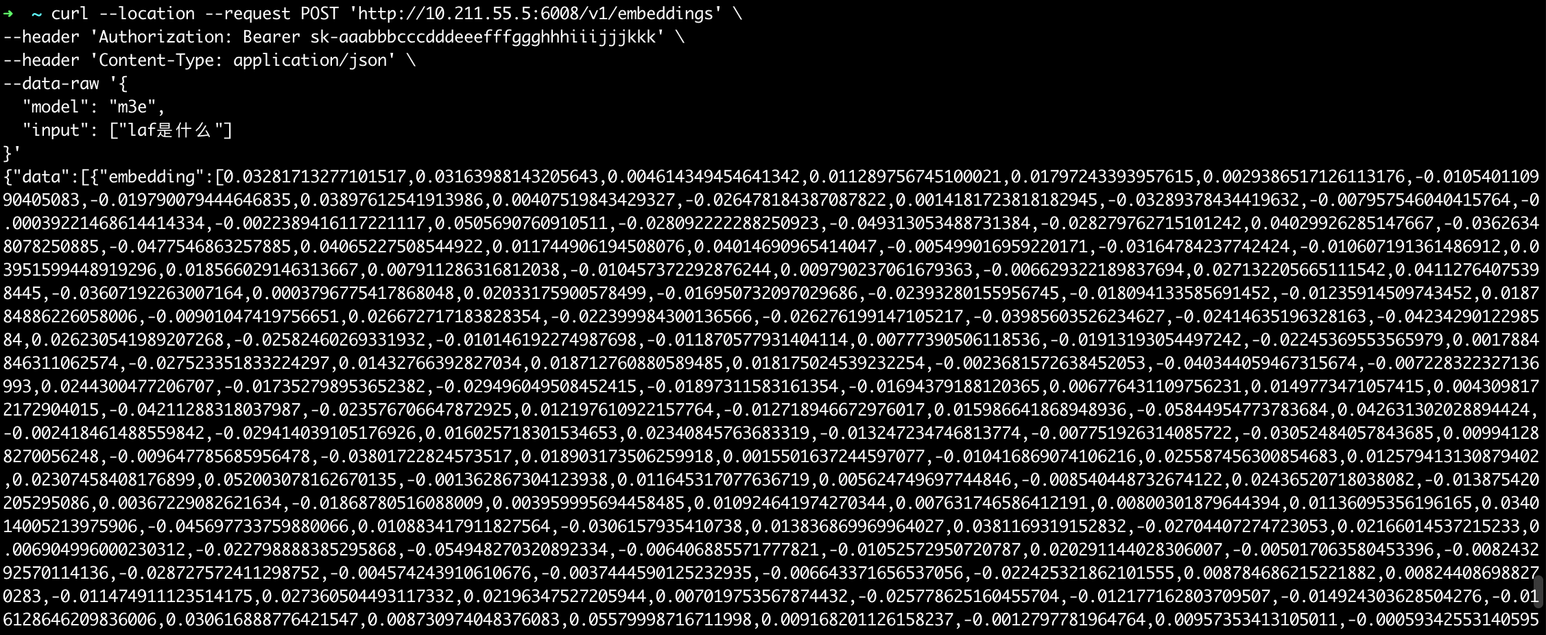 1 | curl --location --request POST 'http://<host>:6008/v1/embeddings' \ |
