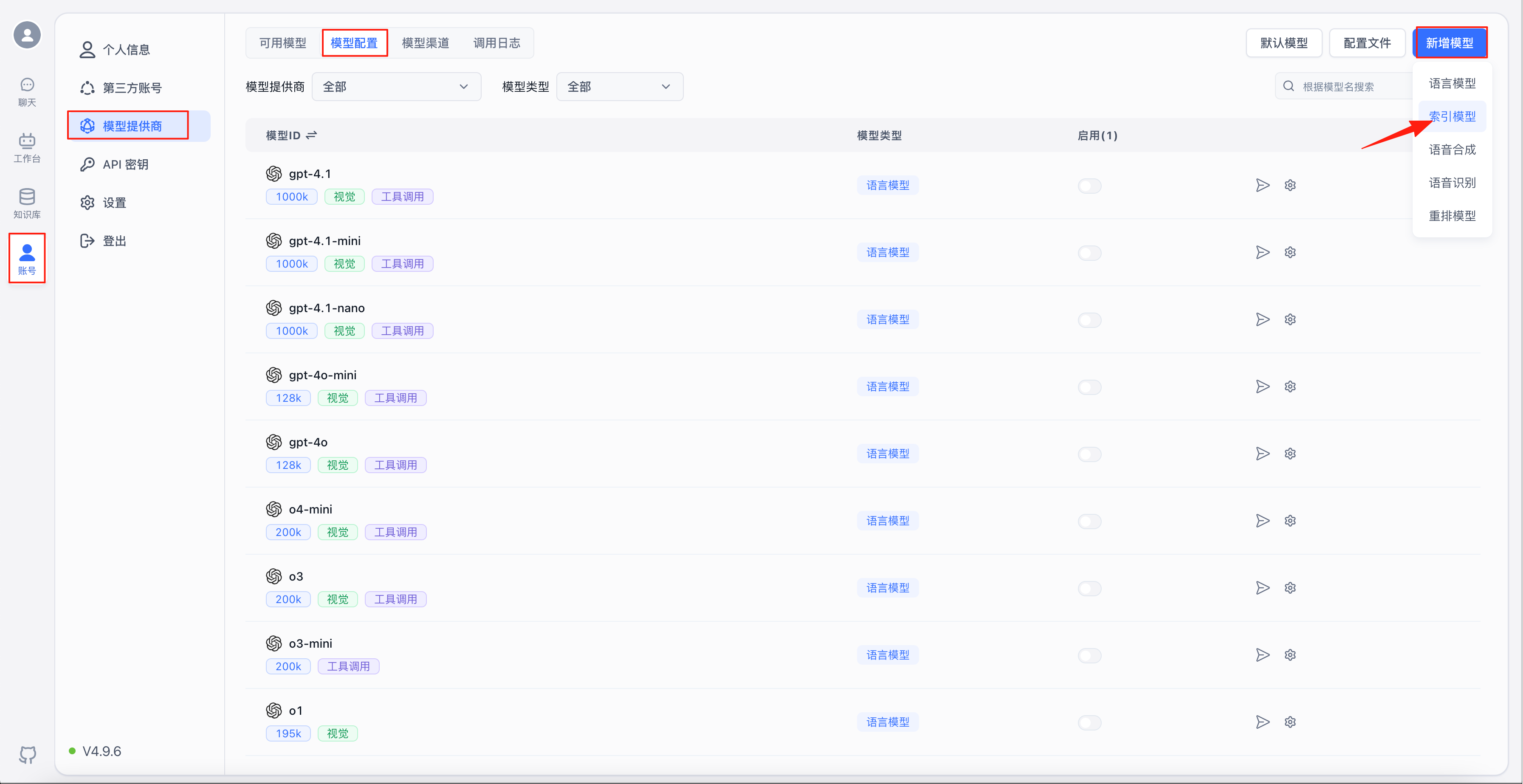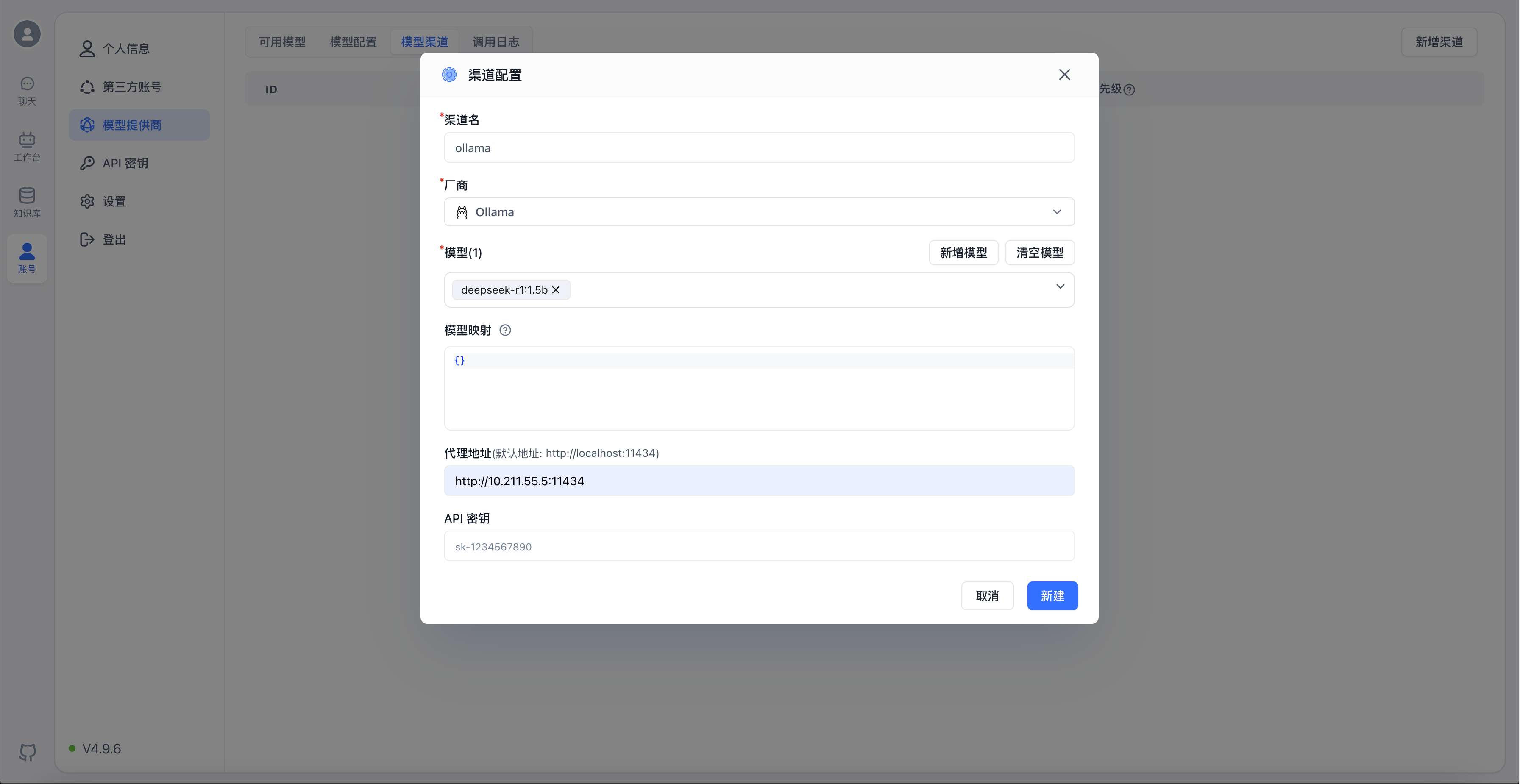 模型:当前渠道具体可以使用的模型,系统内置了主流的一些模型,如果下拉框中没有想要的选项,可以点击“新增模型
