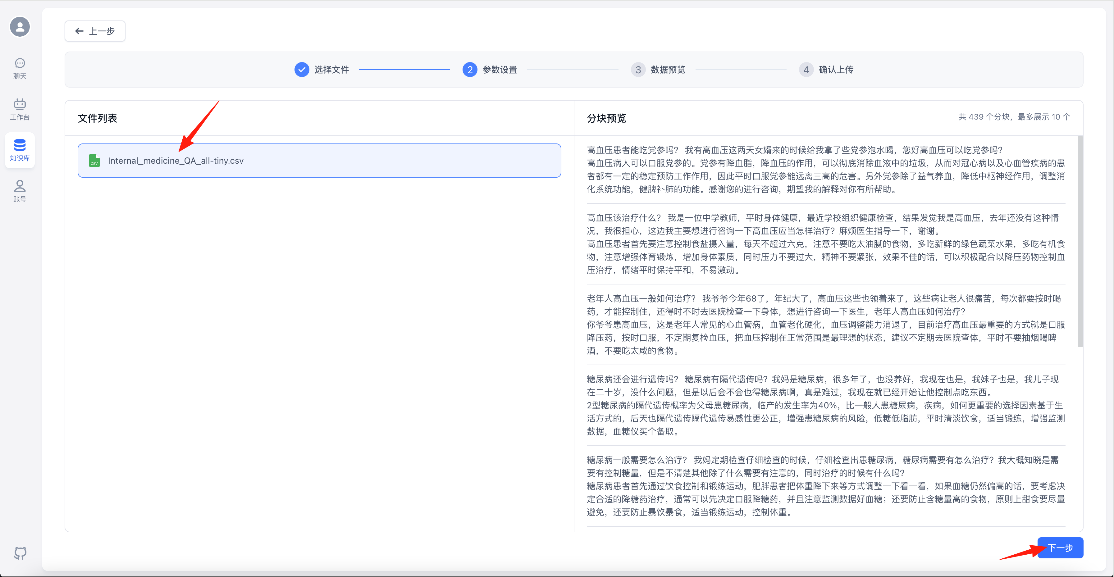 点击左侧文件后可以在右侧进行预览,预览没问题的话点击“下一步