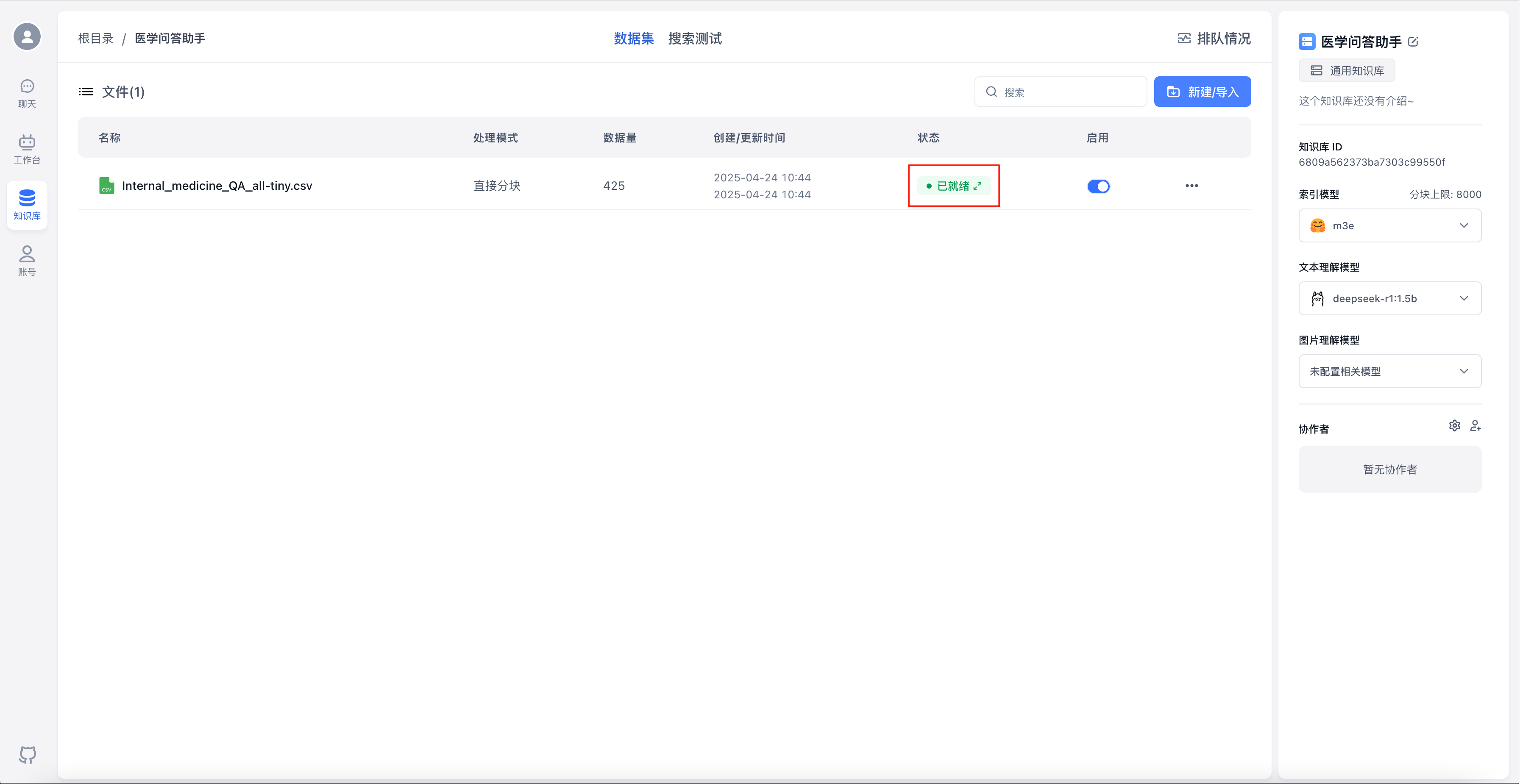 数据集向量化需要时间,耐心等待…待状态变成“已就绪