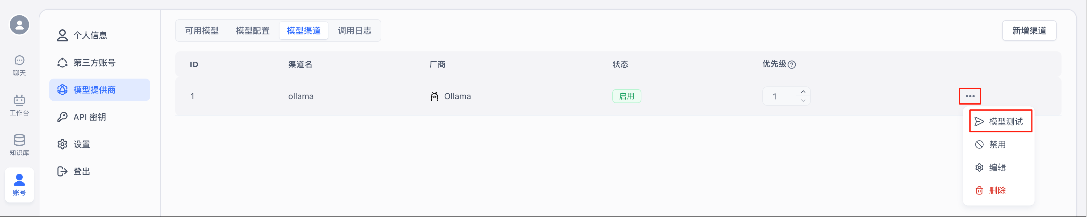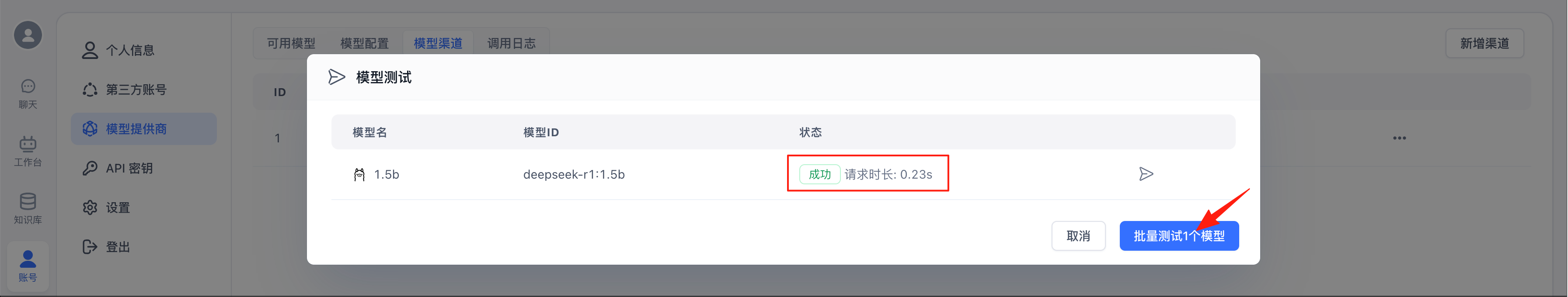 ”,可以对渠道中的所有模型进行批量测试,确保配置的模型有效