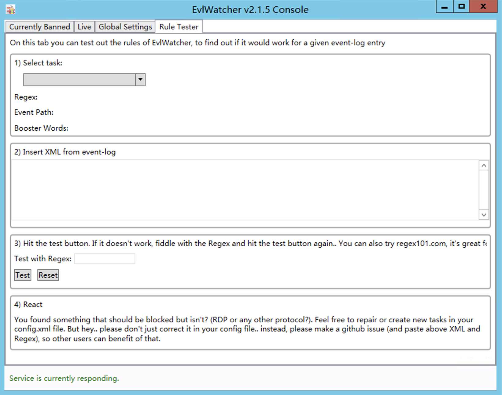 EvlWatcher的工作原理是安装一个服务,该服务会定期扫描事件日志以查找不成功的登录尝试。当违反其中一条规则时(例如:尝试在没有正确凭据的情况下登录,在2分钟内登录超过5次),它会将这个可怜的混蛋置于通用防火墙规则中,从而禁止攻击者2小时。